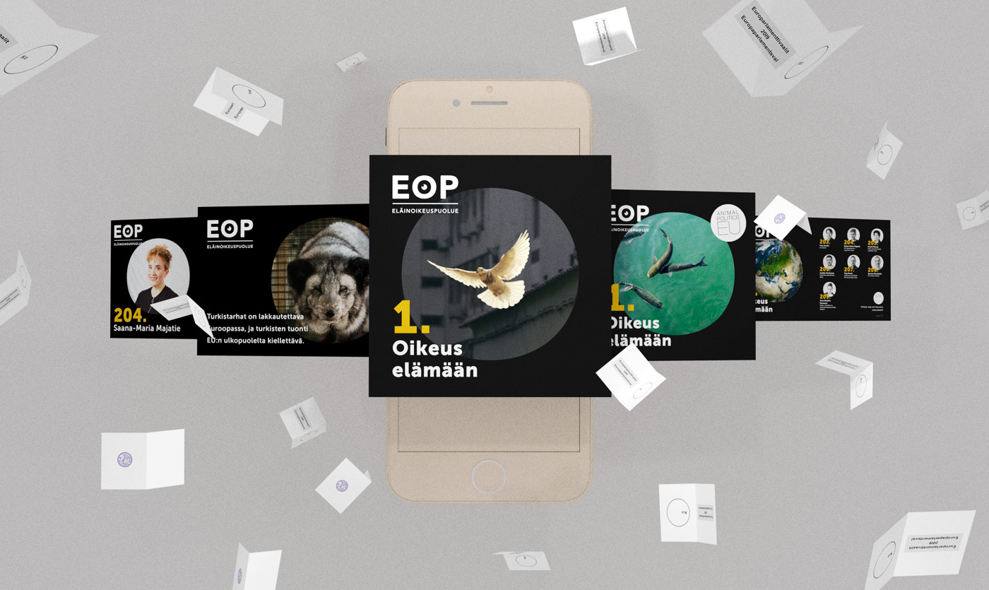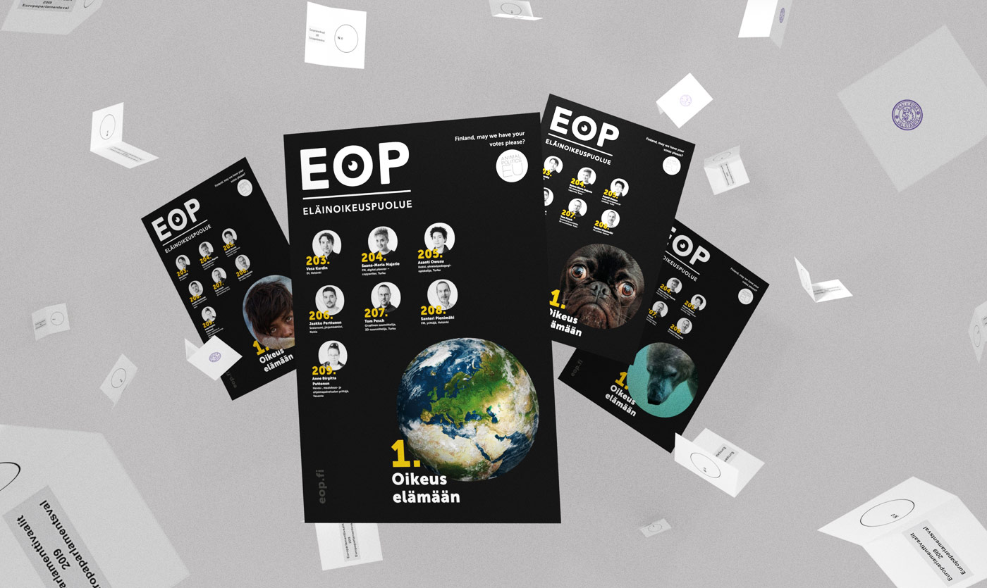 European parliament elections – EOP European parliament elections marketing for EOP (Animal justice party of Finland). Art director. 2019